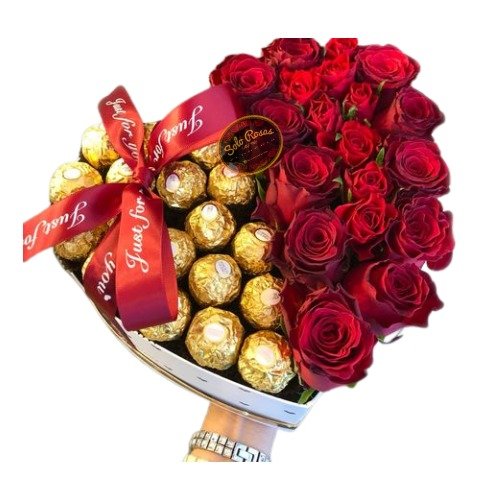 Box de corazón 20 rosas rojas y 20 chocolate ferrero.