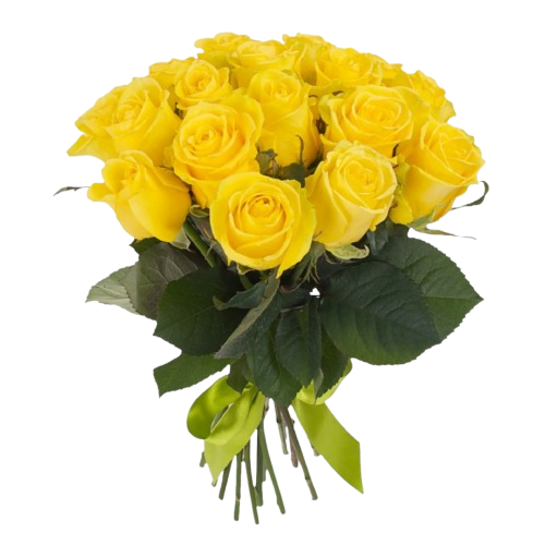 Un ramo de 24 rosas amarillas con delicado follaje, que simboliza amistad, alegría y gratitud, ideal para ocasiones especiales o para transmitir un mensaje de felicidad.